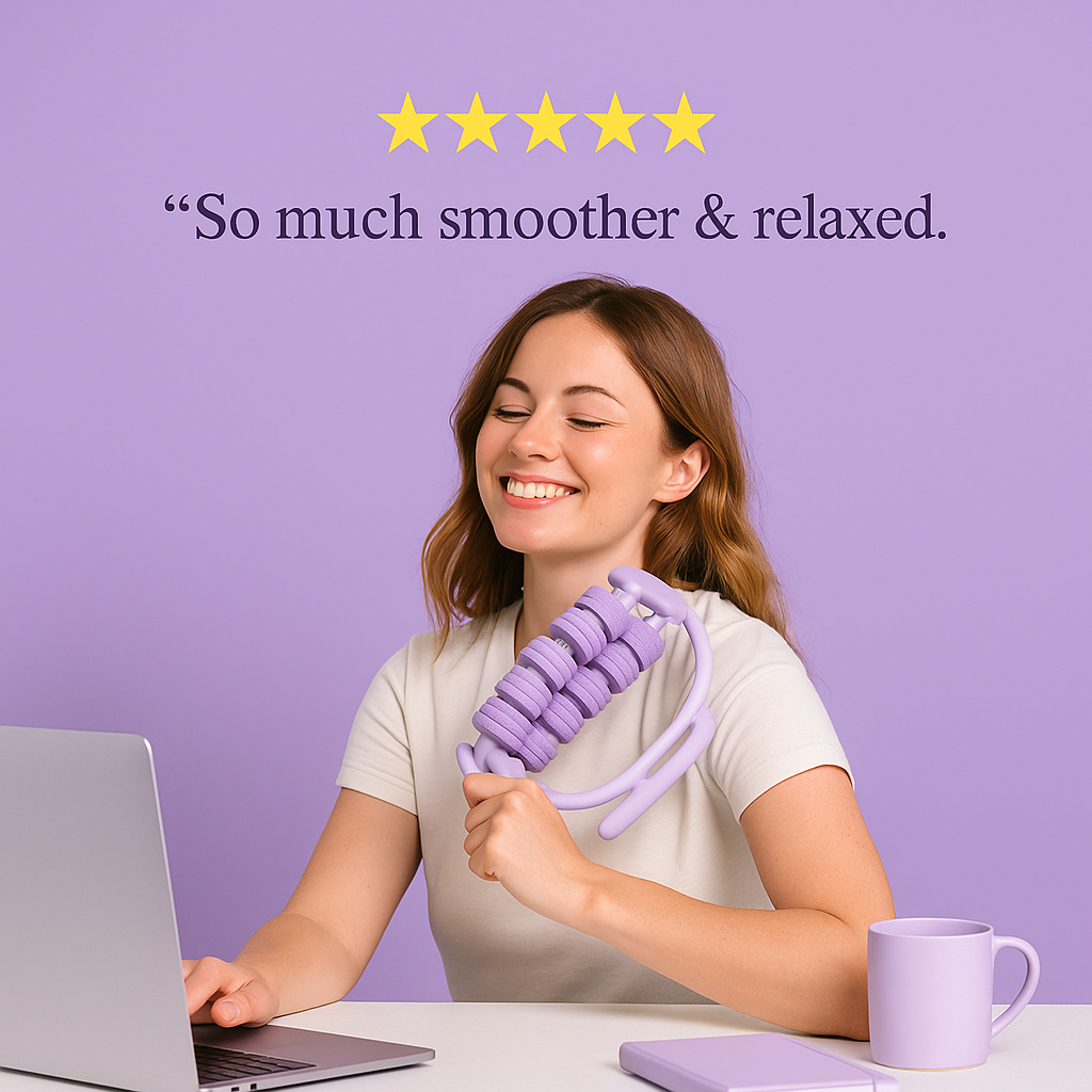 Meet the Violuxe Roller 💜 — your personal deep tissue massage therapist. Its 360° multi-wheel design reaches stubborn knots, boosts circulation, and melts away tension in minutes. Just roll it over sore spots and feel muscles loosen, flexibility return, and stress disappear.